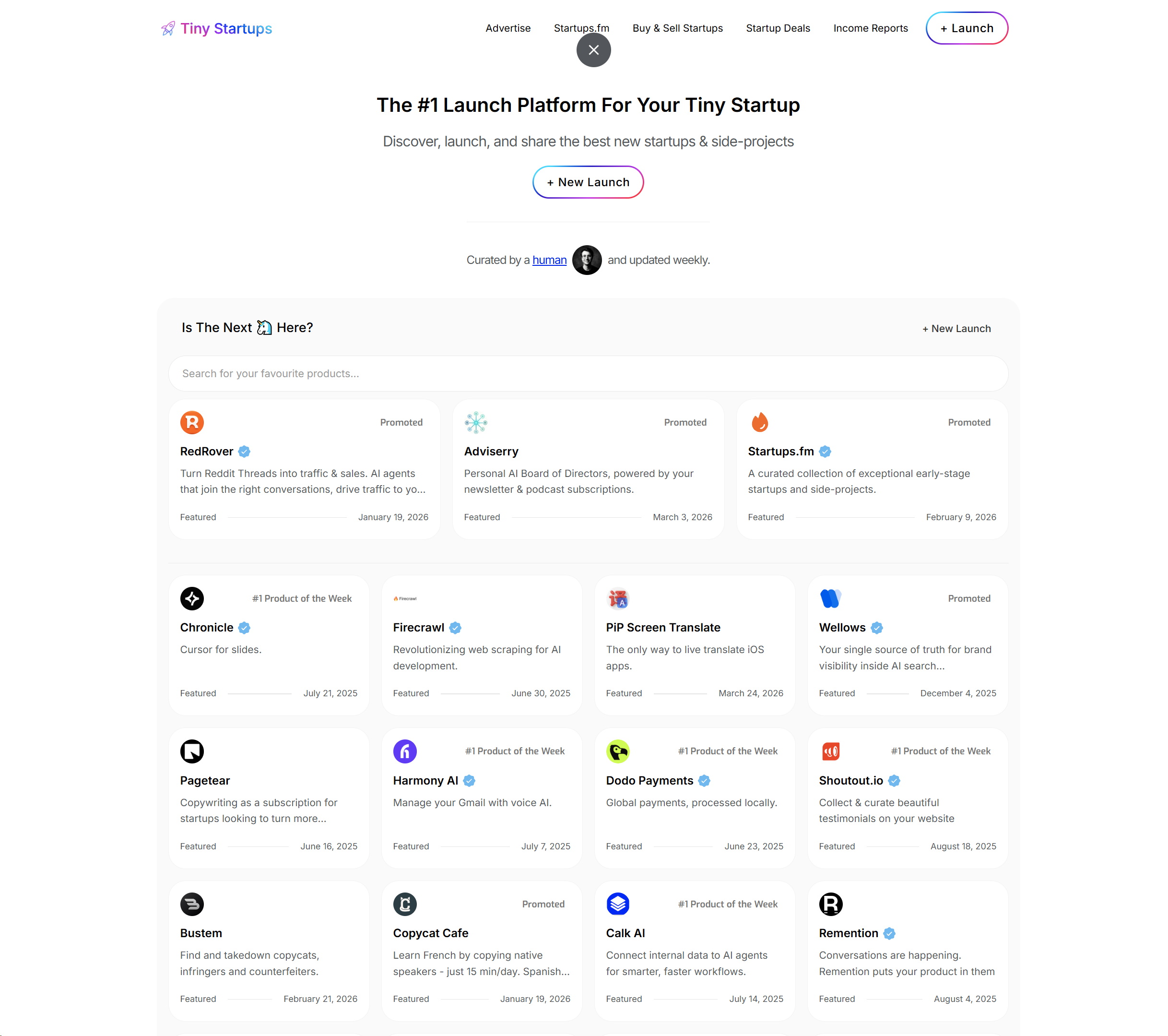 TinyStartups는 전 세계의 마이크로 SaaS, 사이드 프로젝트, 인디 비즈니스를 발굴하고 런칭하는 ‘큐레이션 기반 런칭 패드’입니다. 단순히 서비스를 나열하는 데 그치지 않고, 실제 매출(Revenue)과 비즈니스 모델을 투명하게 공개하여 빌더(Builder)들에게 실질적인 영감과 비즈니스 벤치마킹 데이터를 제공합니다.