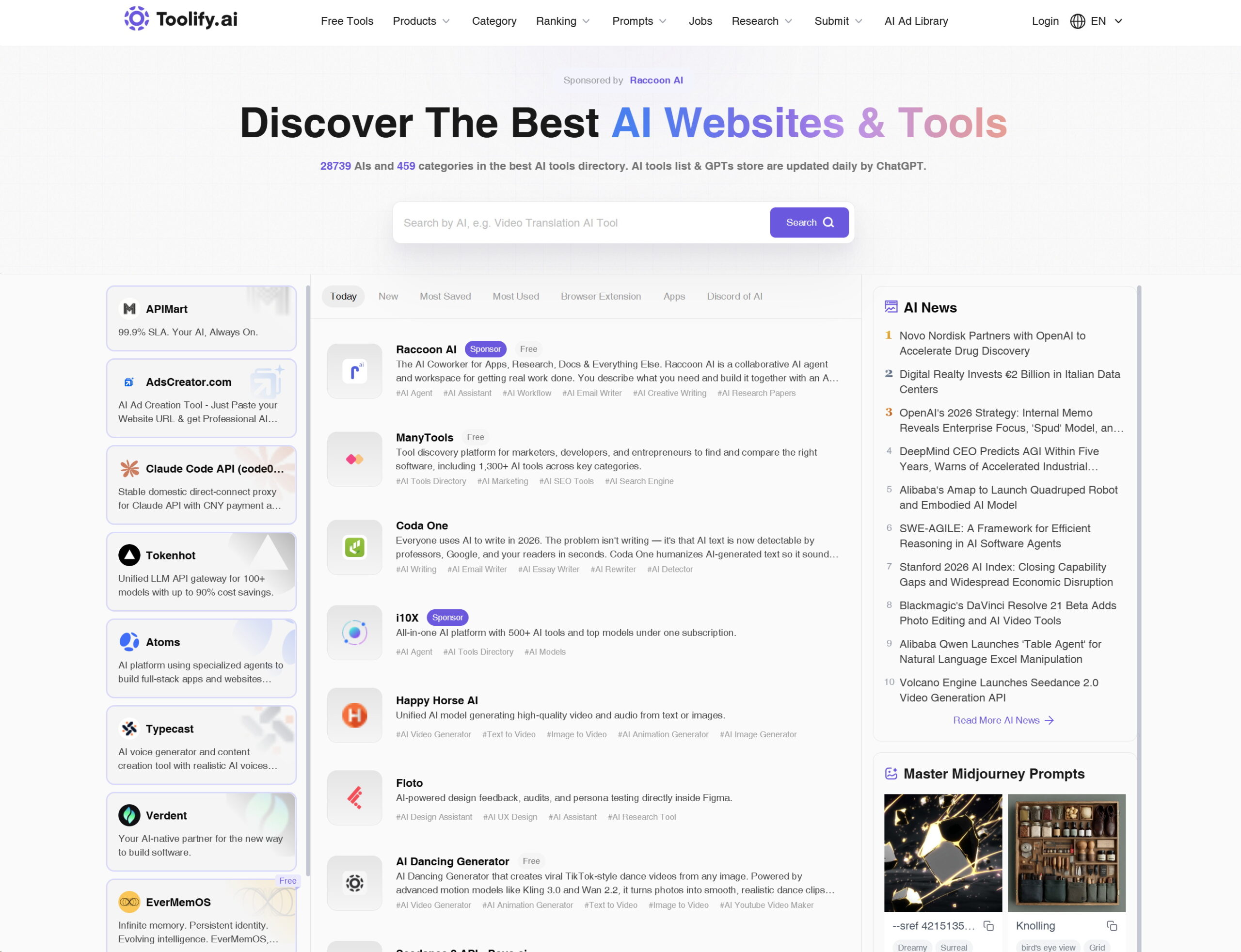 Toolify.ai는 전 세계에 쏟아지는 수만 개의 AI 툴을 카테고리별로 분류하고, 유저들에게 최적의 도구를 추천하는 글로벌 No.1 AI 도구 디렉토리입니다. 단순히 정보를 모으는 것을 넘어, 월간 수천만 명의 방문자를 바탕으로 AI 시장의 트렌드를 주도하는 ‘게이트키퍼(Gatekeeper)’ 역할을 수행합니다.